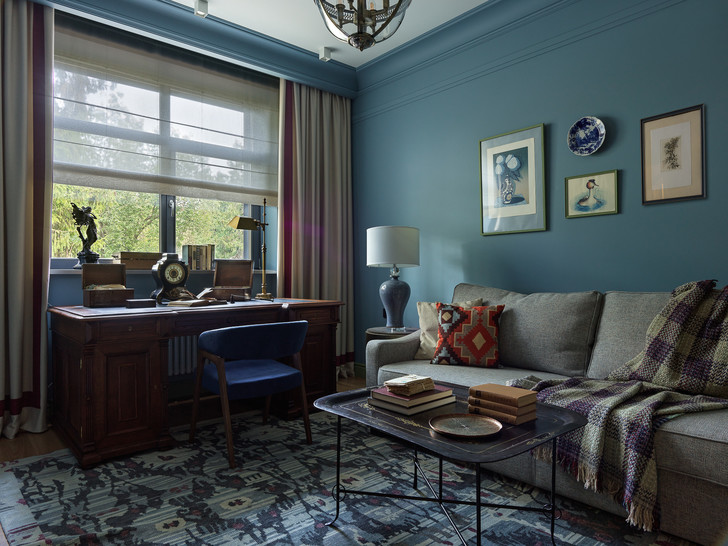 Кабинет. Диван, Dantone home. Стул, Montly. Стол, антиквариат. Ковер, «Декораторское ателье Марка Патлиса».