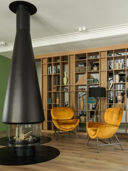 Гостиная. Диван Budapest, Relax. Ковер, «Декораторское ателье Марка Патлиса». Камин, Virtu.